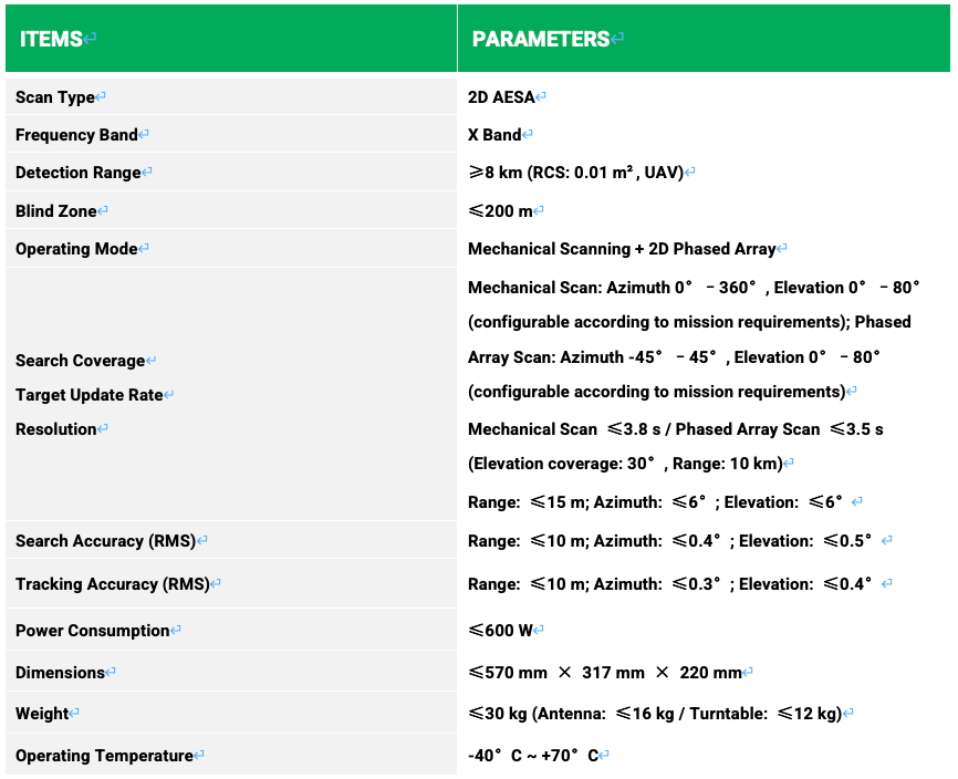 - Supports “1D linear scan + 1D phased scan” and “2D phased scan” directional scanning modes, providing 360° airspace and key area detection; both modes can be flexibly switched without changing software.